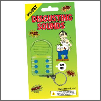 Here it is - the ultimate Gross out device Carry our unique Pocket-Disgusting Sounds Machine in your pocket and gross out friends and strangers - with the simple touch of a button Great for those awkwardly quiet elevators rides or while sitting in a rest room stall The possibilities are lim Read More..